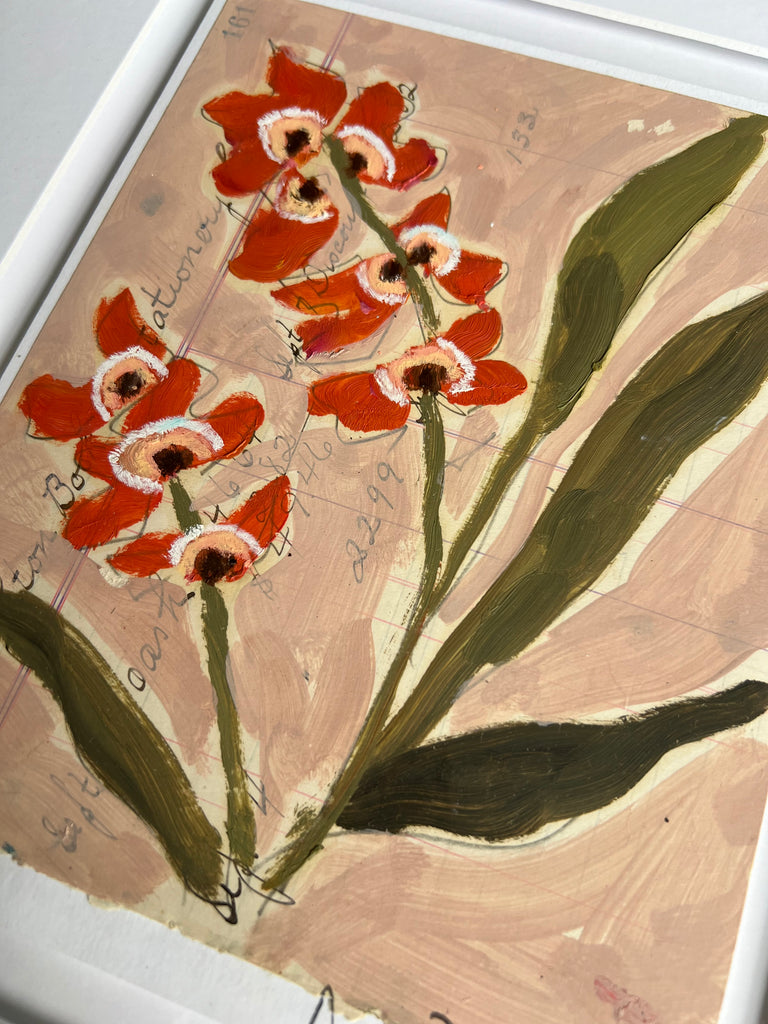 - Custom Framed oil painting on antique register paper from late 1800’s/early 1900’s