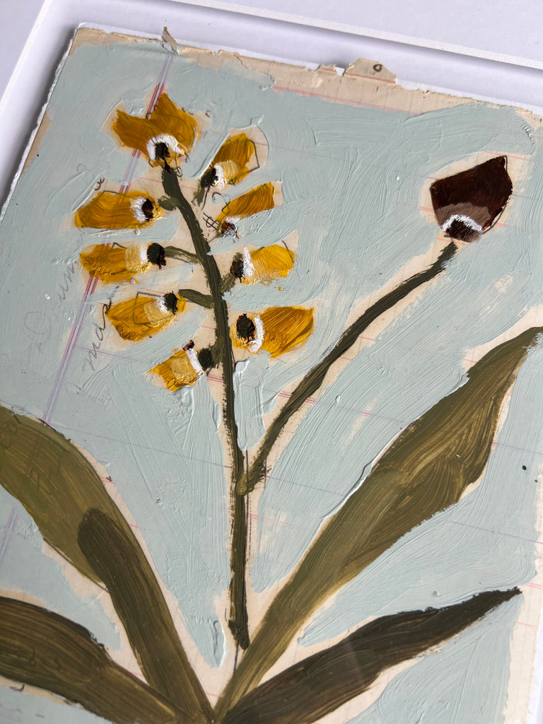- Custom Framed oil painting on antique register paper from late 1800’s/early 1900’s