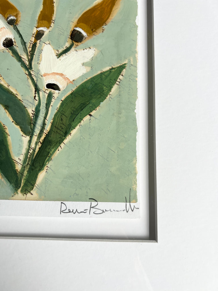 - Custom Framed oil painting on antique register paper from late 1800’s/early 1900’s